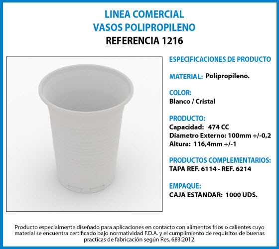 Ficha Técnica Línea Comercial - VASOS POLIPROPILENO 1216