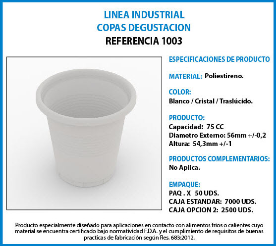 Ficha Técnica Línea Industrial - COPAS DEGUSTACION POLIESTIRENO 1003