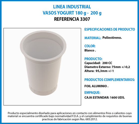 Ficha Técnica Línea Industrial VASOS YOGURT 3307